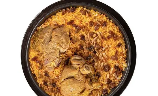 Steam cooked Basmati Rice and Lamb. Infused with secret spices, topped with a mixer of almond, raisins and caramelized onion. Severed with Yemeni tomato and herbs hotsauce (sahawiq)